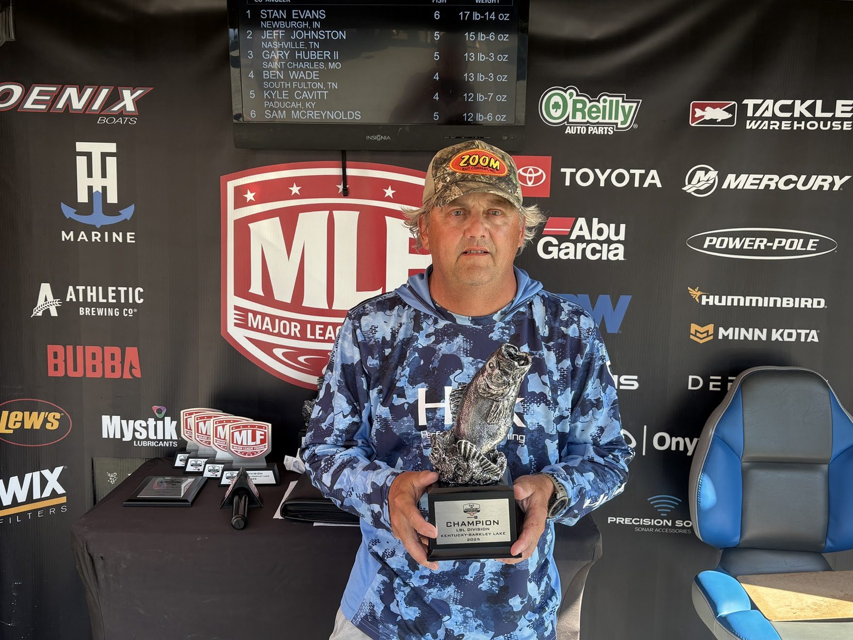 Indiana’s Evans Tops Co-Angler Division GILBERTSVILLE, Ky. (Sept. 29, 2025) – Boater Dustin Vaal of Farmington, Kentucky, caught a two-day total of 10 bass weighing 35 pounds, 5 ounces, to win the MLF Phoenix Bass Fishing League (BFL) Presented by T-H Marine on Kentucky-Barkley Lake. The tournament, hosted by Kentucky Lake Convention & Visitors Bureau, was the fifth and final event of the season for the BFL LBL Division. Vaal earned $4,975 for his victory. Vaal said he found something in practice that allowed him to keep his tournament approach simple. “Friday, during practice, I got lucky at the end of the day and found a spot that was loaded with fish,” Vaal said. “I spent my tournament rotating four spots and caught my fish on a topwater, a Carolina rig and a jerkbait. I essentially just did a big circle in 3 to 6 feet of water that broke off into deeper water. That’s where the majority of my fish were.” Vaal said he focused on the main-river area, from the Paris bridge to Leatherwood to the US 60/KY 80 bridges. Vaal said his efforts accounted for 12 keepers on Saturday and “nine or 10” Sunday. Vaal also had big bites both days to boost his weights, including the Boater Berkley Big Bass that weighed 5-6 Saturday. As simple as his approach was, Vaal’s tournament win didn’t come without drama. Around 1 o’clock Sunday, Vaal tried to start his boat, but nothing electrical worked. He tried switching batteries to no avail. After contacting the tournament director, Vaal called his best friend, third-place finisher Justin Berger, who picked him up and took him to weigh-in. “If it wasn’t for Justin, this win wouldn’t have happened,” Vaal said. “When you’re meant to win a tournament, weird things happen during the day. This is my third BFL win, and every single one of them it seems that something out of your control has happened. But if it’s meant to be, it happens.” The top 10 boaters finished the tournament: 1st: Dustin Vaal, Farmington, Ky., 10 bass, 35-5, $4,975 2nd: Clint Knight, Russellville, Ky., 10 bass, 34-15, $2,333 3rd: Justin Berger, Murray, Ky., 10 bass, 30-3, $1,488 4th: Sam Boss, Paducah, Ky., 10 bass, 29-4, $1,042 5th: Brady Bickers, Carrollton, Ky., eight bass, 28-4, $893 6th: Stephen Barga, Benton, Ky., nine bass, 24-8, $819 7th: Cody Santel, Benton, Ky., eight bass, 21-0, $744 8th: William Merrick, Wartrace, Tenn., nine bass, 20-8, $1,170 (includes $500 Phoenix Bonus) 9th: Richard Meuth, Henderson, Ky., seven bass, 20-7, $595 10th: Caden Crutchfield, Stamping Ground, Ky., eight bass, 19-9, $521 Complete results can be found at MajorLeagueFishing.com. Vaal caught a bass that weighed 5 pounds, 6 ounces, and also earned the Berkley Big Bass Boater award of $510. ![]() Stan Evans of Newburgh, Indiana, won the co-angler division and $2,233 Sunday, after bringing six bass to the scale that totaled 17 pounds, 14 ounces. The top 10 co-anglers finished: 1st: Stan Evans, Newburgh, Ind., six bass, 17-14, $2,233 2nd: Jeff Johnston, Nashville, Tenn., five bass, 15-6, $1,371 3rd: Gary Huber II, Saint Charles, Mo., five bass, 13-3, $744 4th: Ben Wade, South Fulton, Tenn., four bass, 13-3, $521 5th: Kyle Cavitt, Paducah, Ky., four bass, 12-7, $497 6th: Sam McReynolds, Kevil, Ky., five bass, 12-6, $409 7th: James Phillips, West Point, Ky., two bass, 7-15, $372 8th: Barry Gunter, Trafalgar, Ind., three bass, 7-2, $335 9th: Frank Haysley, Louisville, Ky., three bass, 7-2, $298 10th: Marcus Mann, Benton, Ky., three bass, 6-14, $360 Jeff Johnston of Nashville, Tennessee, earned the Berkley Big Bass co-angler award of $255, catching a bass that weighed in at 4 pounds, 14 ounces. With all five events in the division now complete, boater Clint Knight of Russellville, Kentucky, won the Fishing Clash LBL Division Angler of the Year (AOY) race with 1,361 points and earned the $1,000 prize, while Marcus Mann of Benton, Kentucky, won the Fishing Clash LBL Division Co-Angler of the Year race with 1,304 points and earned the $500 payout. The top 60 boaters and co-anglers in the division based on point standings, along with the five tournament winners of each qualifying event, will qualify for the Oct. 24-25 BFL Regional tournament on Dale Hollow Lake in Byrdstown, Tennessee. Boaters will fish for a top award of a new Phoenix 819 Pro with a 200-horsepower Mercury or Suzuki outboard worth $50,000, while co-anglers will compete for a top award of $20,000. The 2025 Phoenix BFL Presented by T-H Marine is a 24-division circuit devoted to weekend anglers, with 134 events throughout the season, five qualifying tournaments in each division. The top 60 boaters and co-anglers from each division, along with the five qualifying tournament winners, will advance to one of 12 BFL Regional tournaments where they are competing to finish in the top three, which then qualifies them for one of the longest-running championships in all of competitive bass fishing – the BFL All-American. |