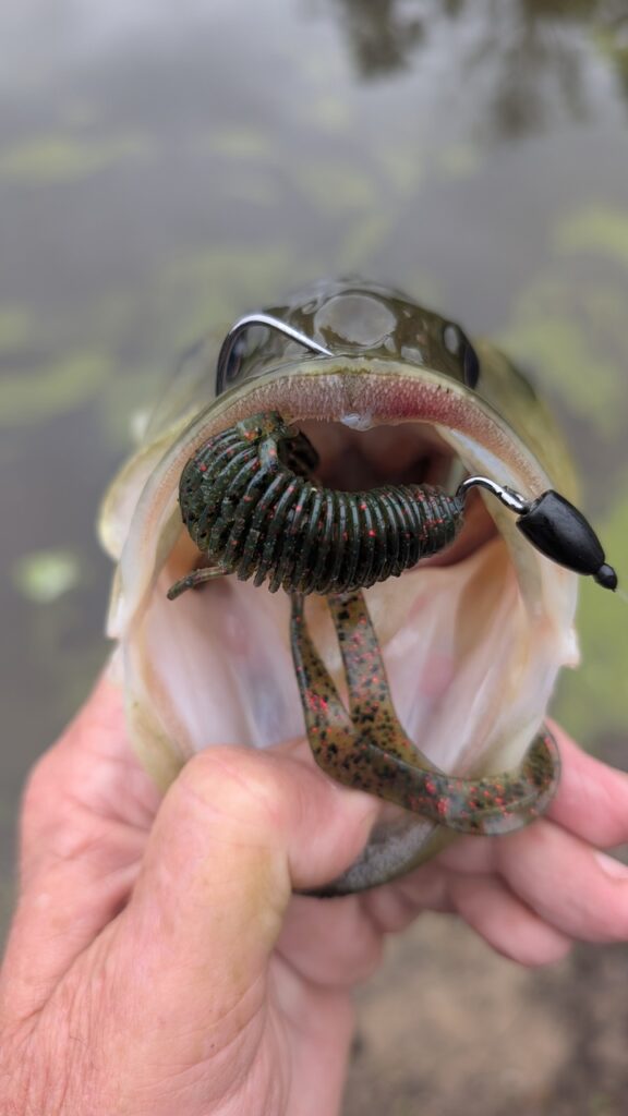 The crisp morning air is spattered with the fog of the heat rising off the water. Ahead lies a beautiful oak tree that has only been in the water for two months. With the press of a thumb and a roll cast, the Missile Baits D Stroyer slices through the air, gently breaking the surface as it lands near the outside edge of the top branches. Slowly watching the fluorocarbon line as the baits wiggles down, the tentacles flapping through the tender branches until the slack comes into the line. With a slow turn of the handle, the spool engages and the slack is taken up, but just enough to allow the bait to rest quietly. With a slow lift of the rod, the line tightens and the bait hops as it crawls over the branches and then back to the bottom. Suddenly, the line snaps tight as it is picked up off the bottom, and the rod snaps back as the hook is driven into the lip of an unsuspecting bass.