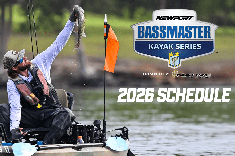 BIRMINGHAM, Ala. — B.A.S.S. has announced the schedule for the 2026 Newport Bassmaster Kayak Series presented by Native Watercraft, featuring six premier fisheries across the country as well as a championship event to be held in conjunction with the 2026 Bass Pro Shops Bassmaster Classic presented by Under Armour in Knoxville, Tenn.