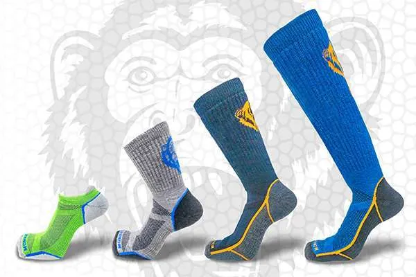 Fish Monkey and Hunt Monkey offer a wide range of styles in three sock designations: lightweight, medium-weight and heavyweight. For warm weather, choose the lightweight No-Show Tab, Crew, Boot Cut or Over the Calf (OTC) styles. When things turn chilly, the medium-weight Boot Cut and OTC styles are perfect, especially when wearing rubber boots or waders. And for frigid conditions down to as cold as minus 30 degrees F, the heavyweight Boot Cut and OTC get the call, keeping your feet warm without adding unneeded bulkiness.