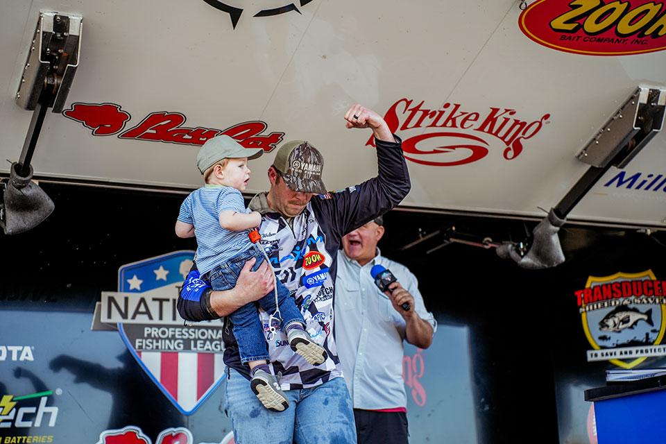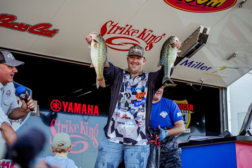 “I saw the potential to catch them good, but knew Day One was going to be tough,” he said after weighing in the biggest bag of the tournament. “Today things just lined up. The rain last night helped, the sun was the biggest key, and out here you just need to get the right bites and land them — and I did that today.”