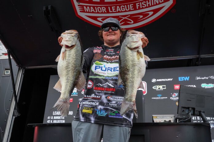 Leading the way, pro Aaron Yavorsky of Palm Harbor, Florida, hammered out 35 pounds, 4 ounces. Tuscola, Texas’ Austin Pemberton tallied an even 35 pounds in second, and pro Matteo Turano of Puryear, Tennessee, slipped into third place with 31-9. The Top 10 all caught over 25 pounds ( Cal Lane did it on just four bass!), and TJ McKenzie popped 27-15 with a 10-pounder for Berkley Big Bass. Still, the day was far off the pace that was hoped for after practice, as the shortened day, bad luck and fish movement definitely hurt the overall weights. That said, MLFNOW! produced a boatload of highlights, and when the full field shoots it out for the win tomorrow, it’s sure to be appointment viewing again.