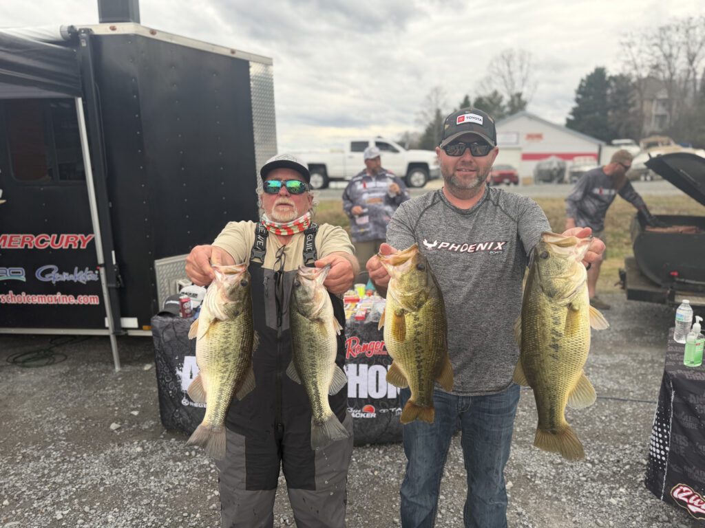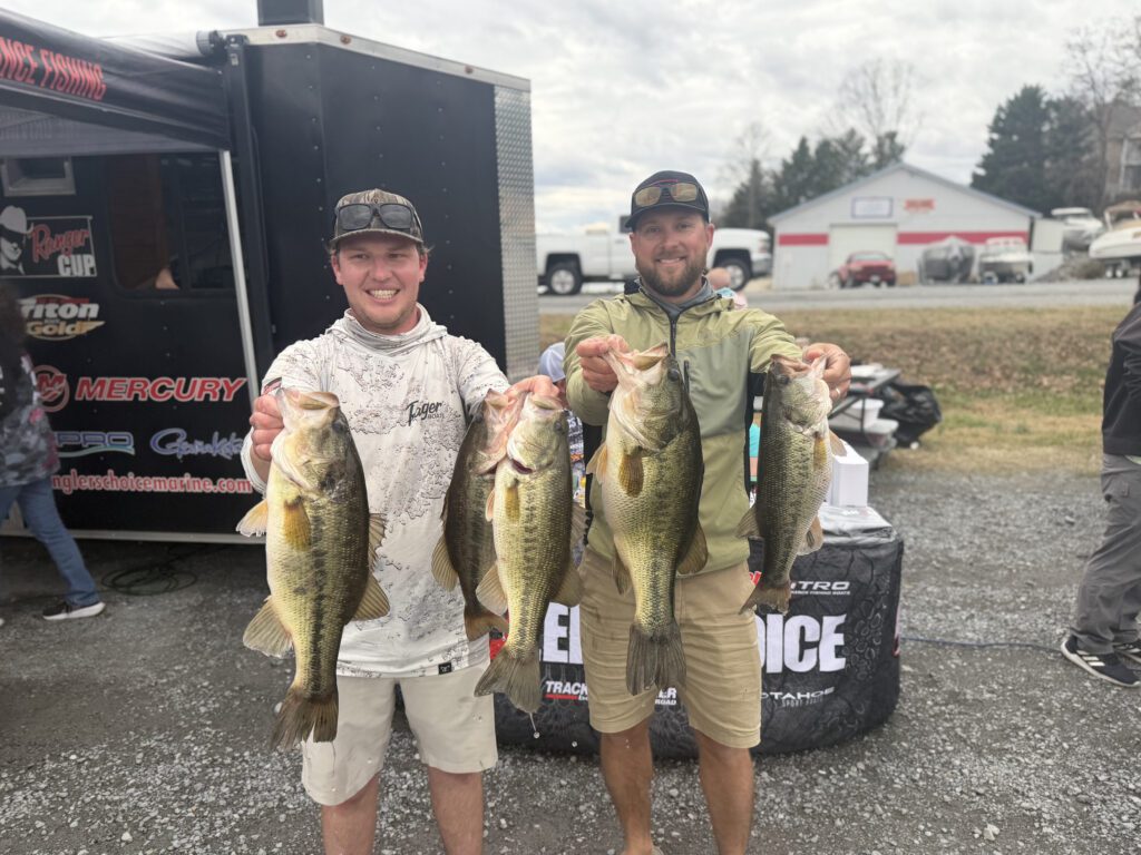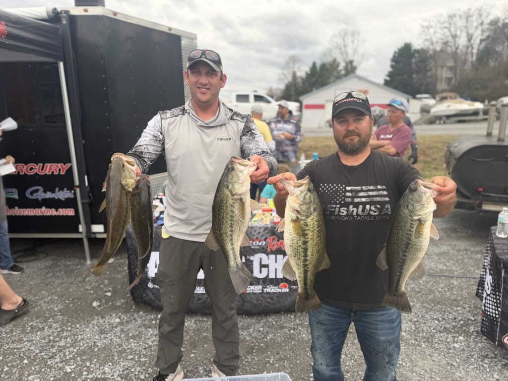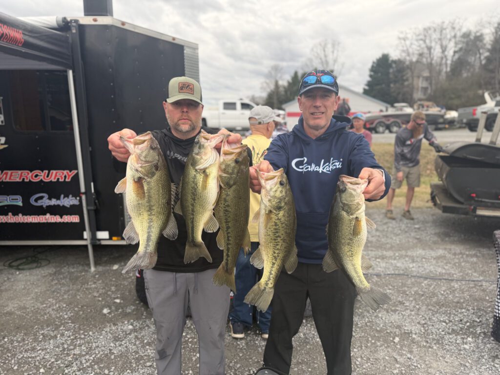 Back to back winners GREG STALLINGS & RICKY GRANT brought the biggest bag in again on Sunday, March 8 at Smith Mountain Lake! They had five fish that weighed 26.74 lbs, beating their weight on Saturday. Second place went to brothers, CHAD PILSON & ELLIOT PILSON, with five fish hitting the scales at 25.01 lbs.