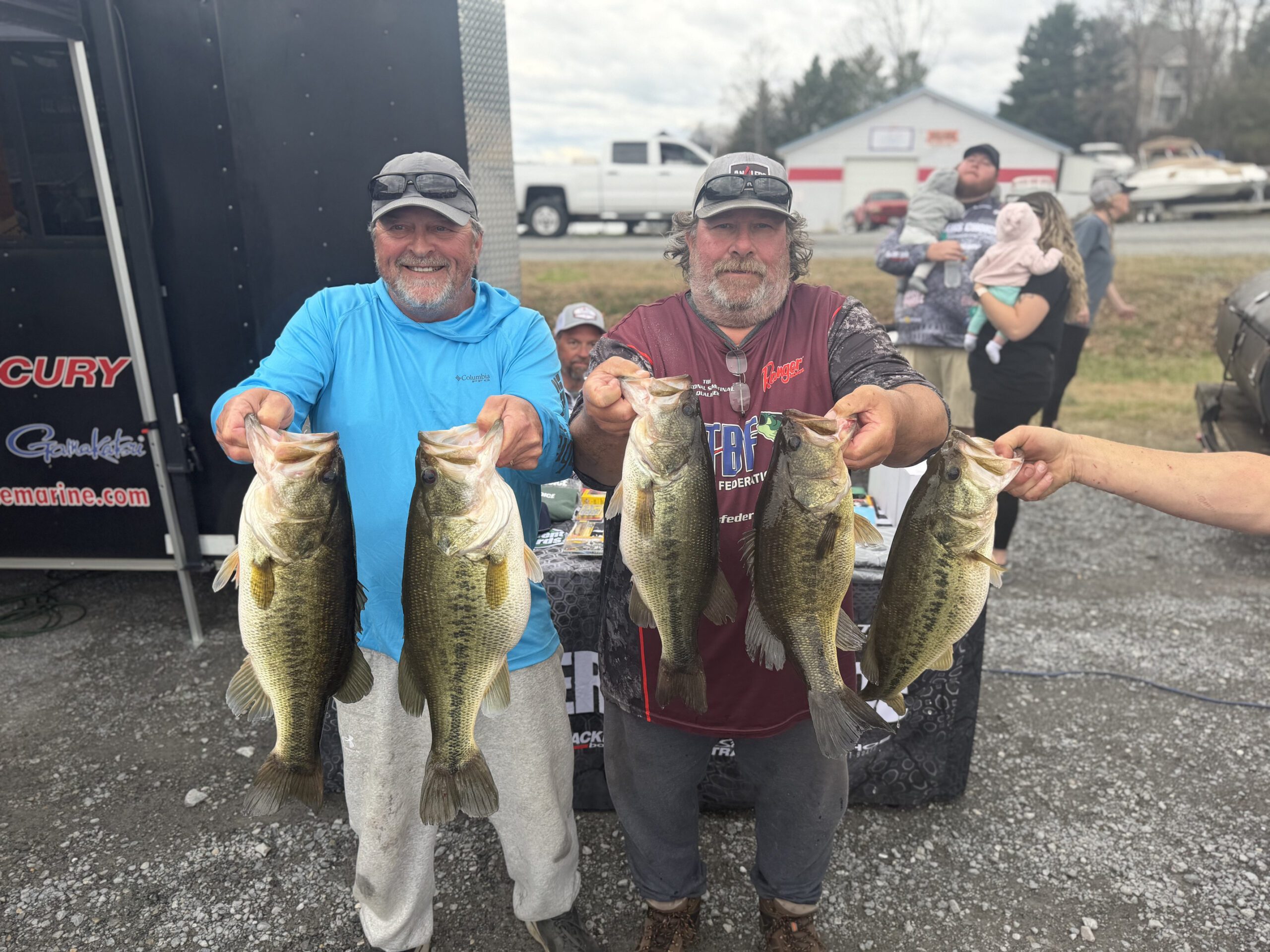 Back to back winners GREG STALLINGS & RICKY GRANT brought the biggest bag in again on Sunday, March 8 at Smith Mountain Lake! They had five fish that weighed 26.74 lbs, beating their weight on Saturday. Second place went to brothers, CHAD PILSON & ELLIOT PILSON, with five fish hitting the scales at 25.01 lbs.
