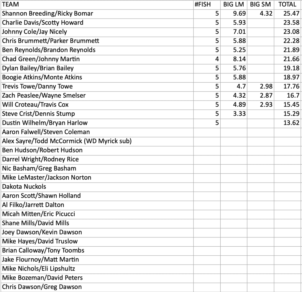 Shannon Breeding & Ricky Bomar Get the Cat win today on Smith Mountain Lake with 25.47lbs