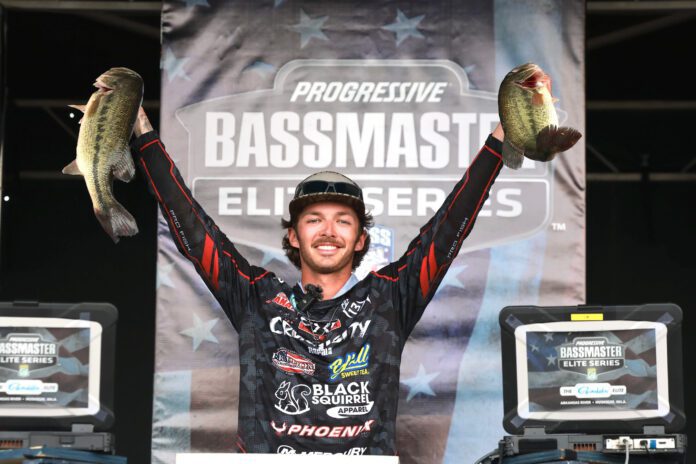 Alabama’s Fisher Anaya maintains the lead on Day 2 of the Gamakatsu Bassmaster Elite at Arkansas River with a two-day total of 37 pounds, 1 ounce.