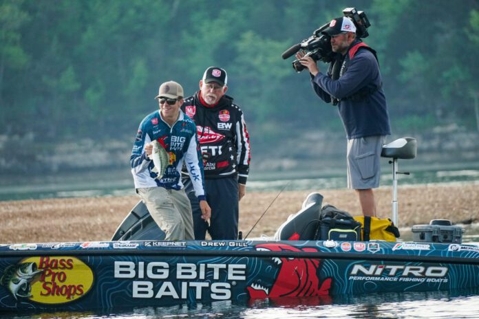 Anyone watching on the MLFNOW! livestream could tell Gill enjoyed himself Friday, and not just because he held the lead for much of the day. He fished in his wheelhouse, throwing a jighead minnow while using forward-facing sonar and a variety of finesse worms without it. Catching an estimated 45 total bass (including every species Table Rock had to offer) was icing on the cake.