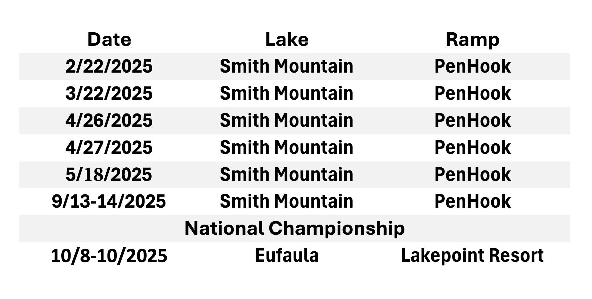 American BASS Anglers – Div 7 Virginia West – Smith Mountain Lake – Penhook By Brian Carter - February 22, 2025 0 214 FacebookTwitterPinterestWhatsApp Map Unavailable Date/Time Date(s) - February 22All Day Categories ABA Division 7 Western VA Schedules