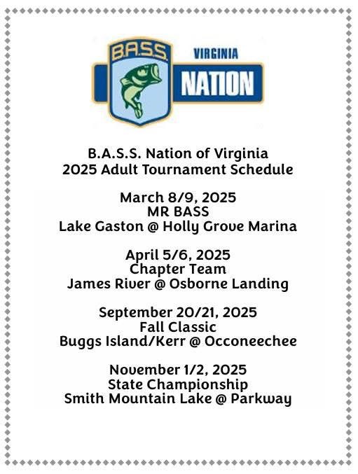 Bass Nation of VA – Chapter Team James River – April 5/6 By Brian Carter - April 5, 2025 0 239 FacebookTwitterPinterestWhatsApp Map Unavailable Date/Time Date(s) - April 5 - April 6All Day Categories Bass Nation of VA VA Schedules