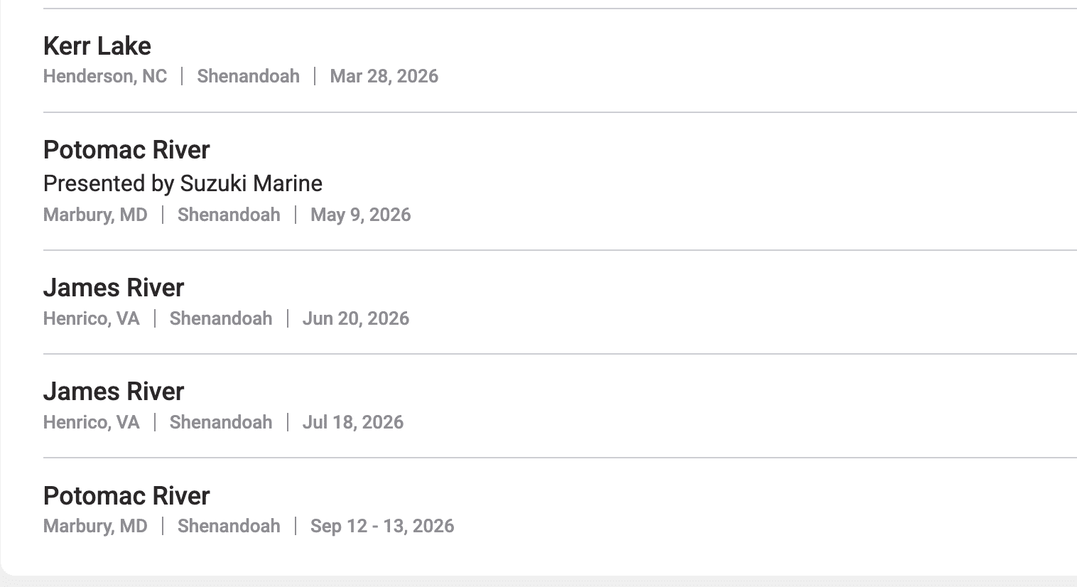 MLF/BFl – Shenandoah Division – Kerr Lake – Mar 28th By Brian Carter - March 28, 2026 0 117 FacebookTwitterPinterestWhatsApp Map Unavailable Date/Time Date(s) - March 2812:00 am Categories BFL VA Shenandoah Division VA Schedules CLICK TO GET REGISTERED