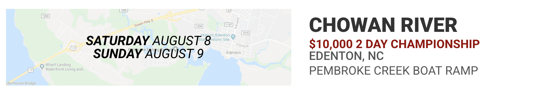North Carolina Bass Challenge – Chowan River – June 20th By Brian Carter - June 20, 2026 0 51 FacebookTwitterPinterestWhatsApp Map Unavailable Date/Time Date(s) - June 2012:00 am Categories NC Schedules North Carolina Bass Challenge