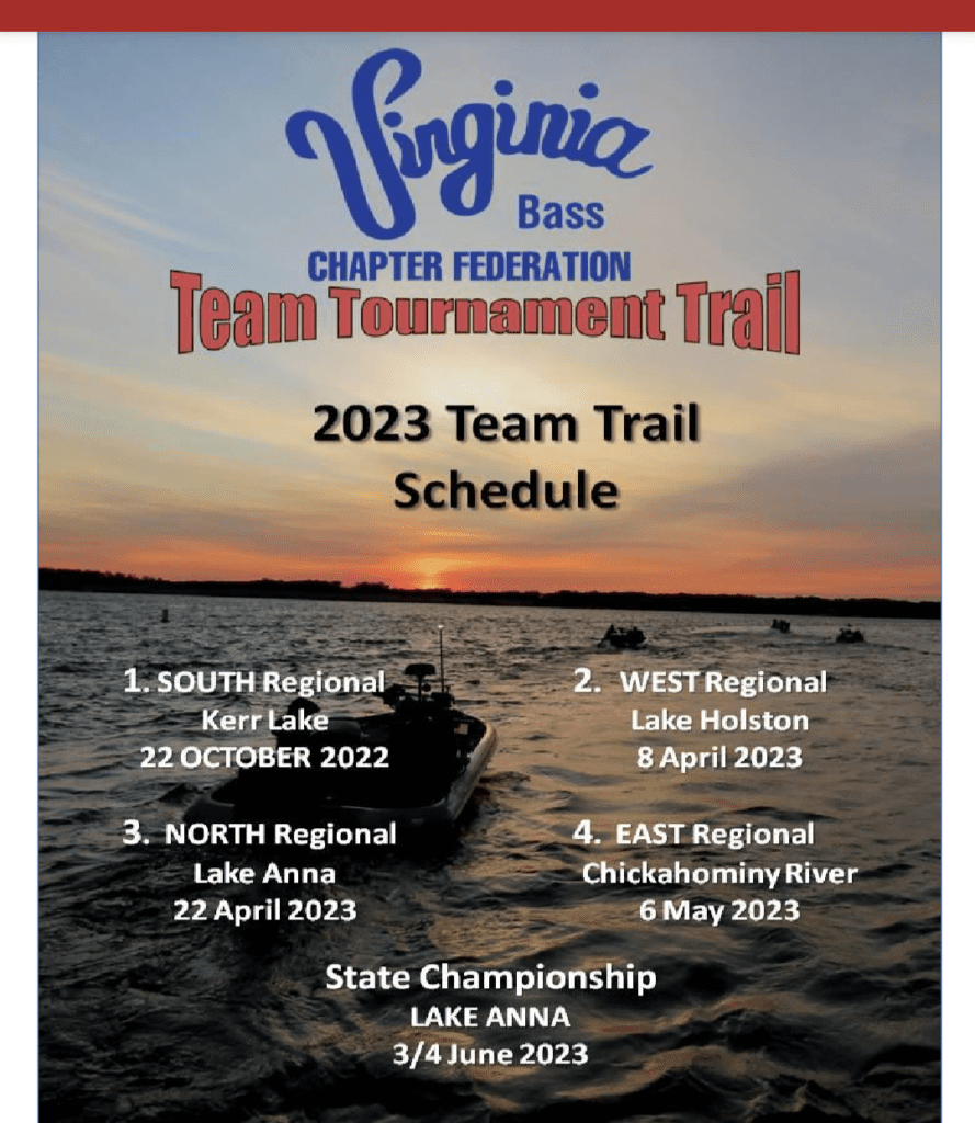 VA Bass Chapter Federation 2023 Schedule – Lake Holston By Brian Carter - April 8, 2023 0 288 FacebookTwitterPinterestWhatsApp Map Unavailable Date/Time Date(s) - April 8All Day Categories VA Bass Chapter Federation VA Schedules